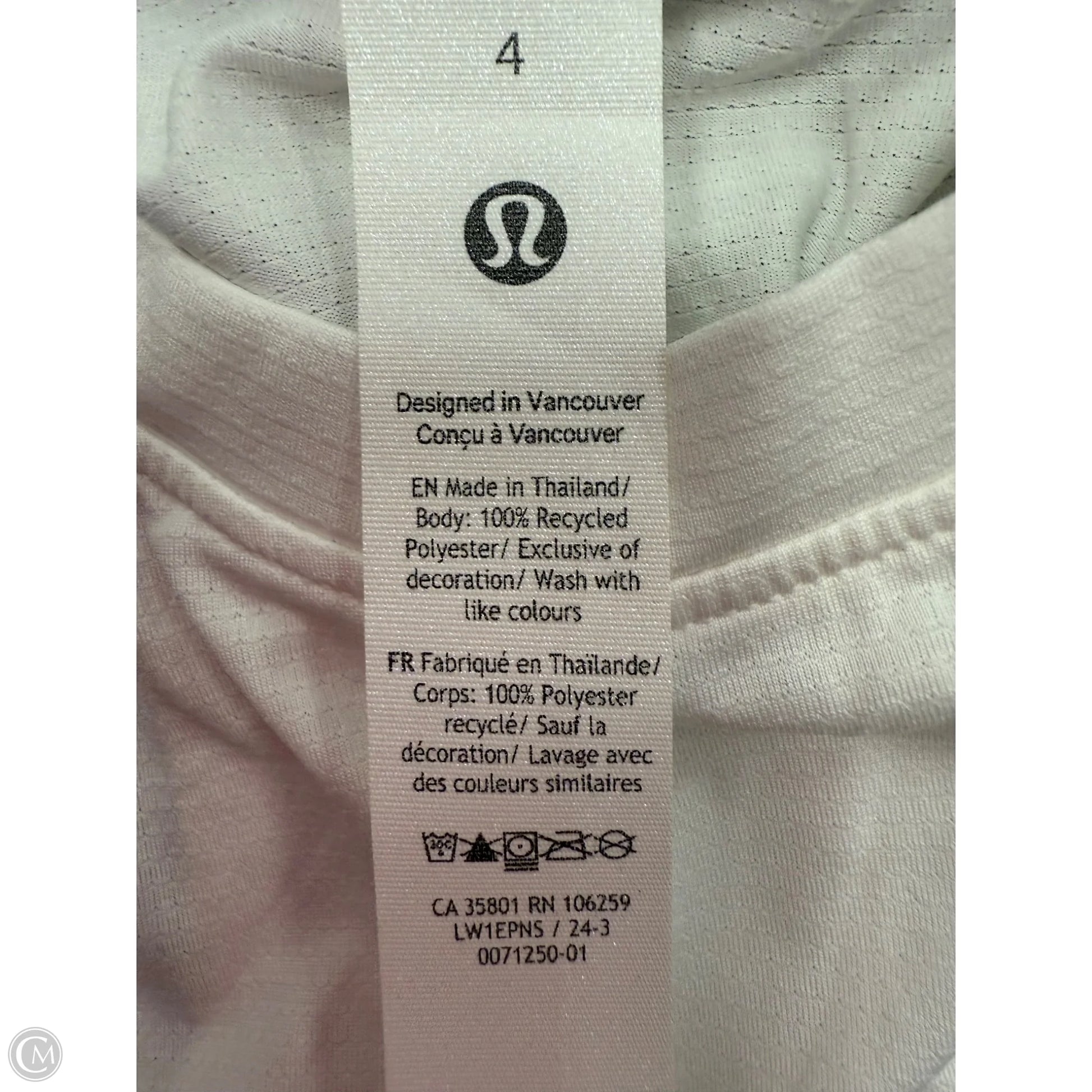 Athletic Tank Top By Lululemon In White, Size: 4