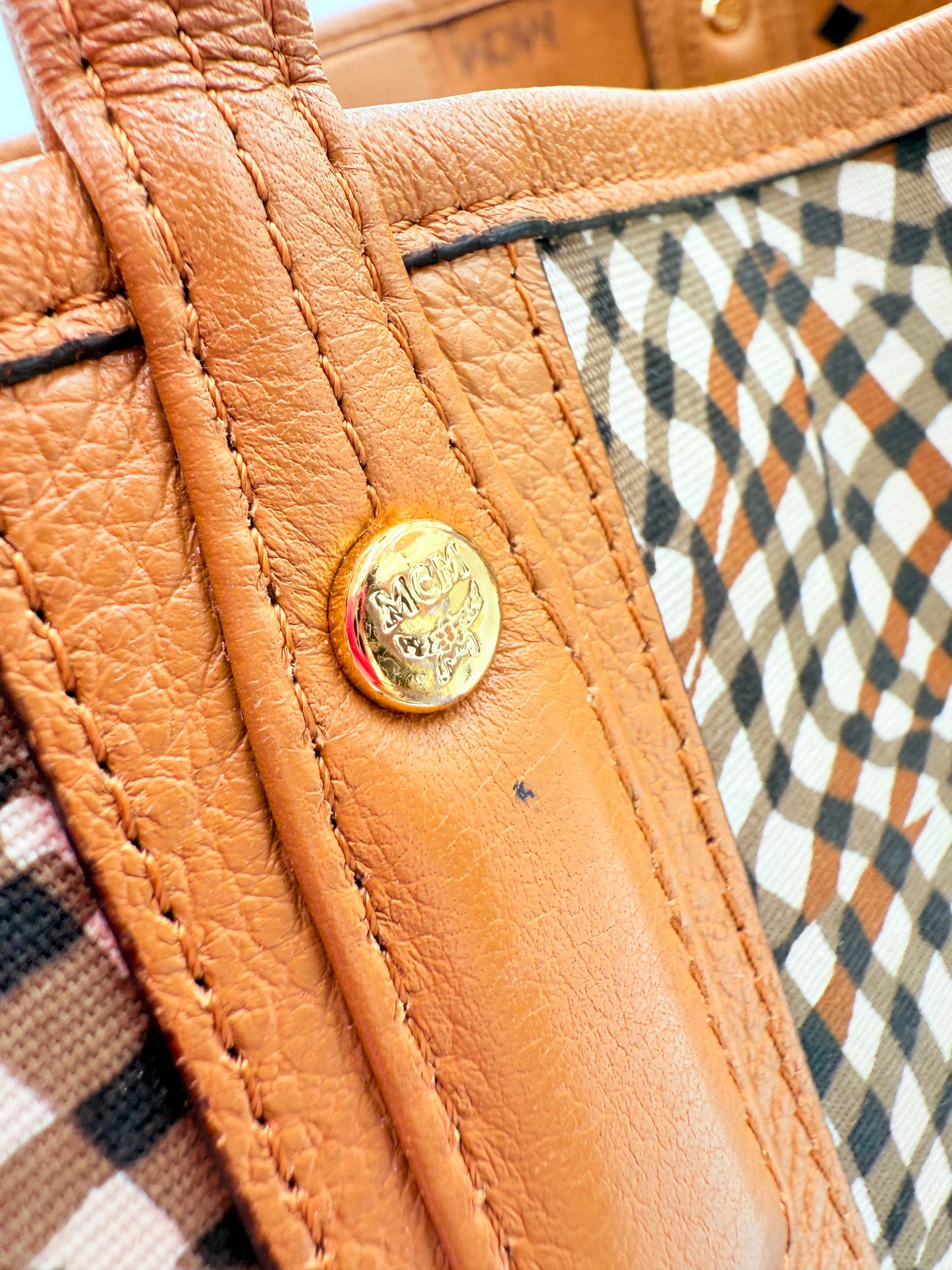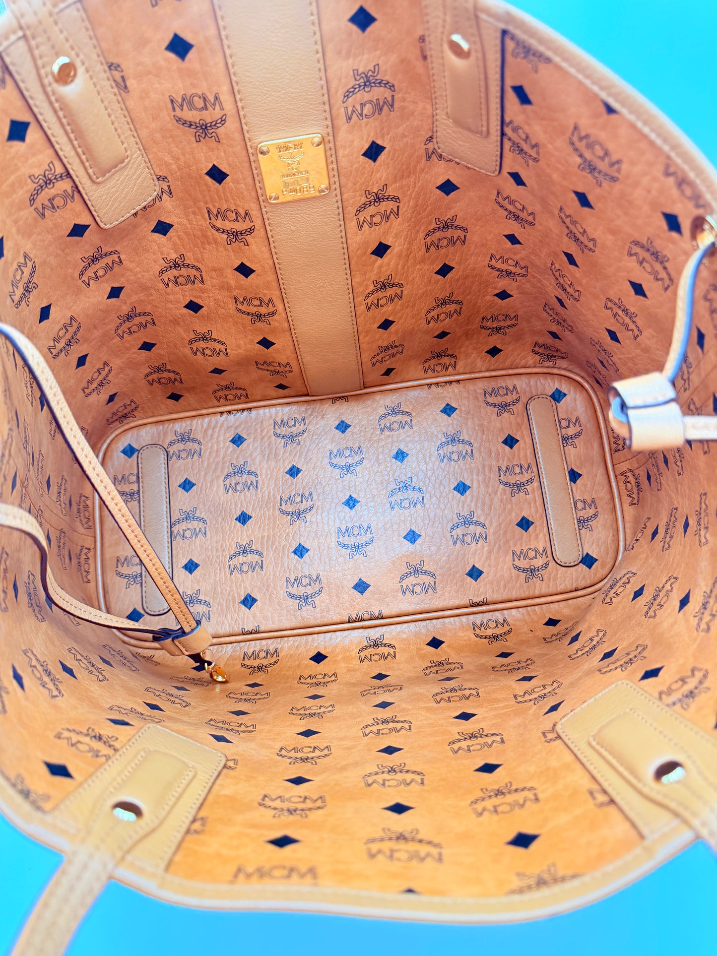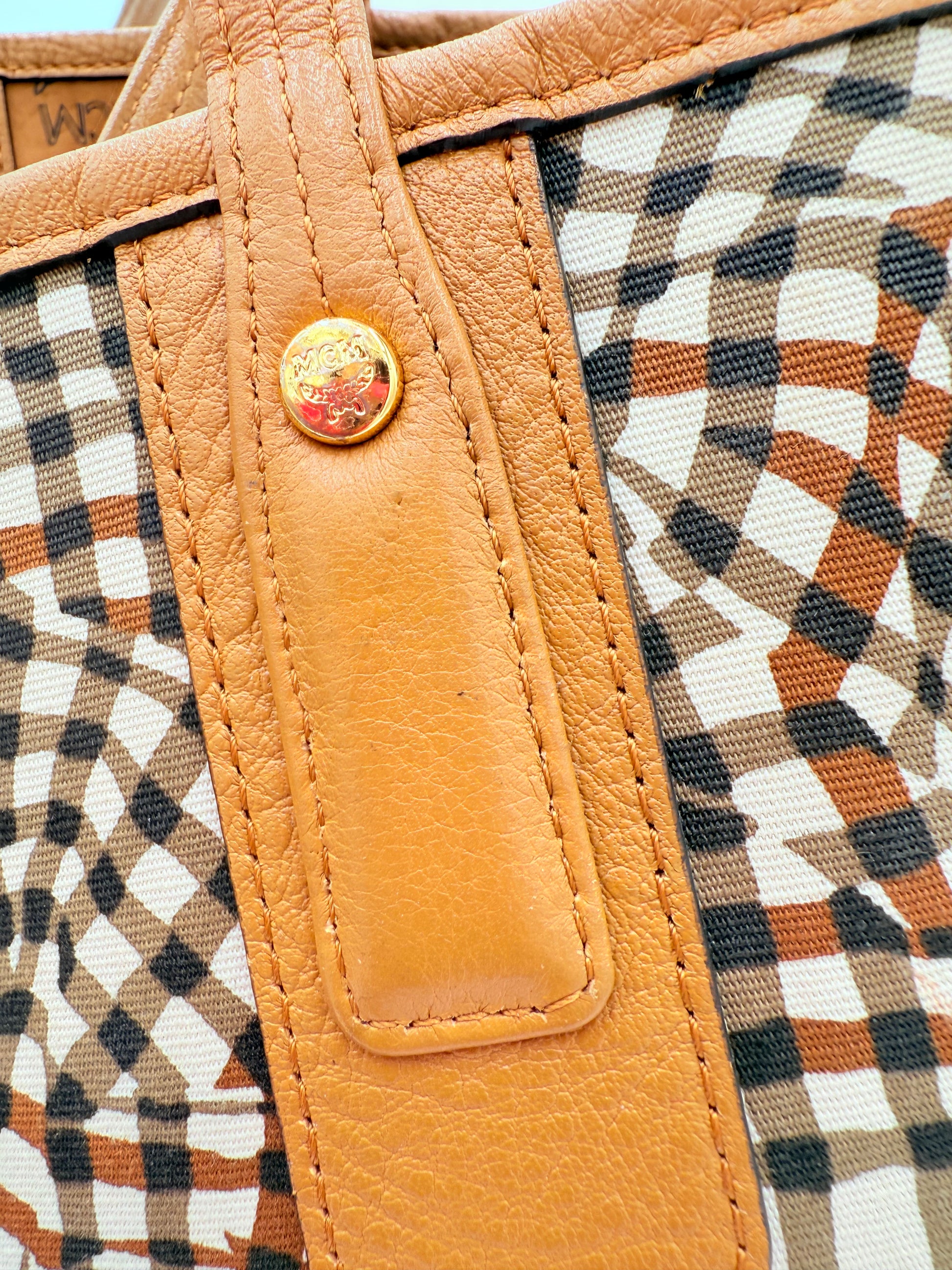 Tote Luxury Designer By Mcm In Tan, Size:Medium